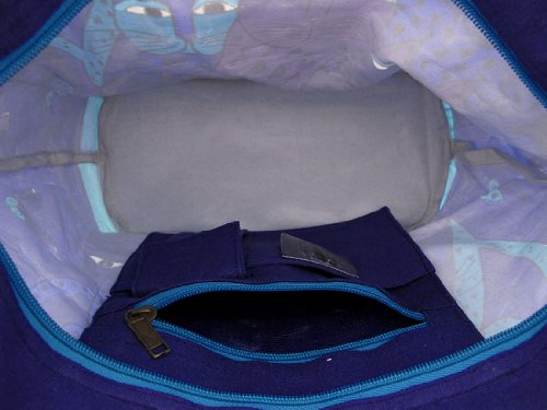 -. Feature : Beautiful authentic Laurel Burch designed tote / 17" wide by 11" high and 7" deep / Heavy duty canvas with white waterproof lining / 3 inside pockets / Zipper Closure