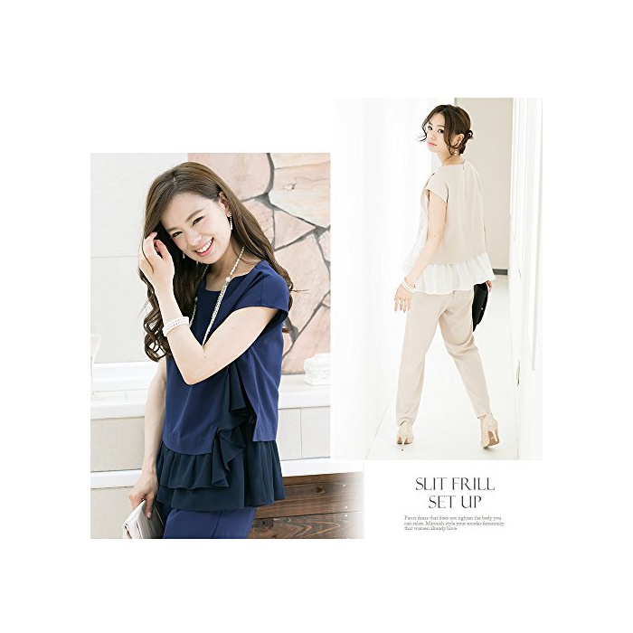 【상품 특징】슬릿부터 제외하는 프릴 드랩(장식주름)가 페미닌한 팬츠 드레스입니다.