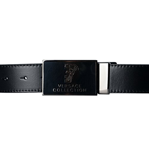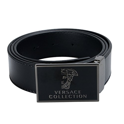 -. Binding : Apparel -. Brand : Versace -. Department : mens -. Feature : The belt runs size down. / Material: Genuine Leather. Belt Width: 1.25" / SKU: AZ-4286. Model:V91S173 VM00043 V000 / Made in Italy / Buckle can be detached and used with different belt. Dust bag and original box are included. -. ProductGroup : Apparel -. ProductTypeName : ACCESSORY -. Title : Versace Collection Men's Black Leather Buckle Decorated Belt