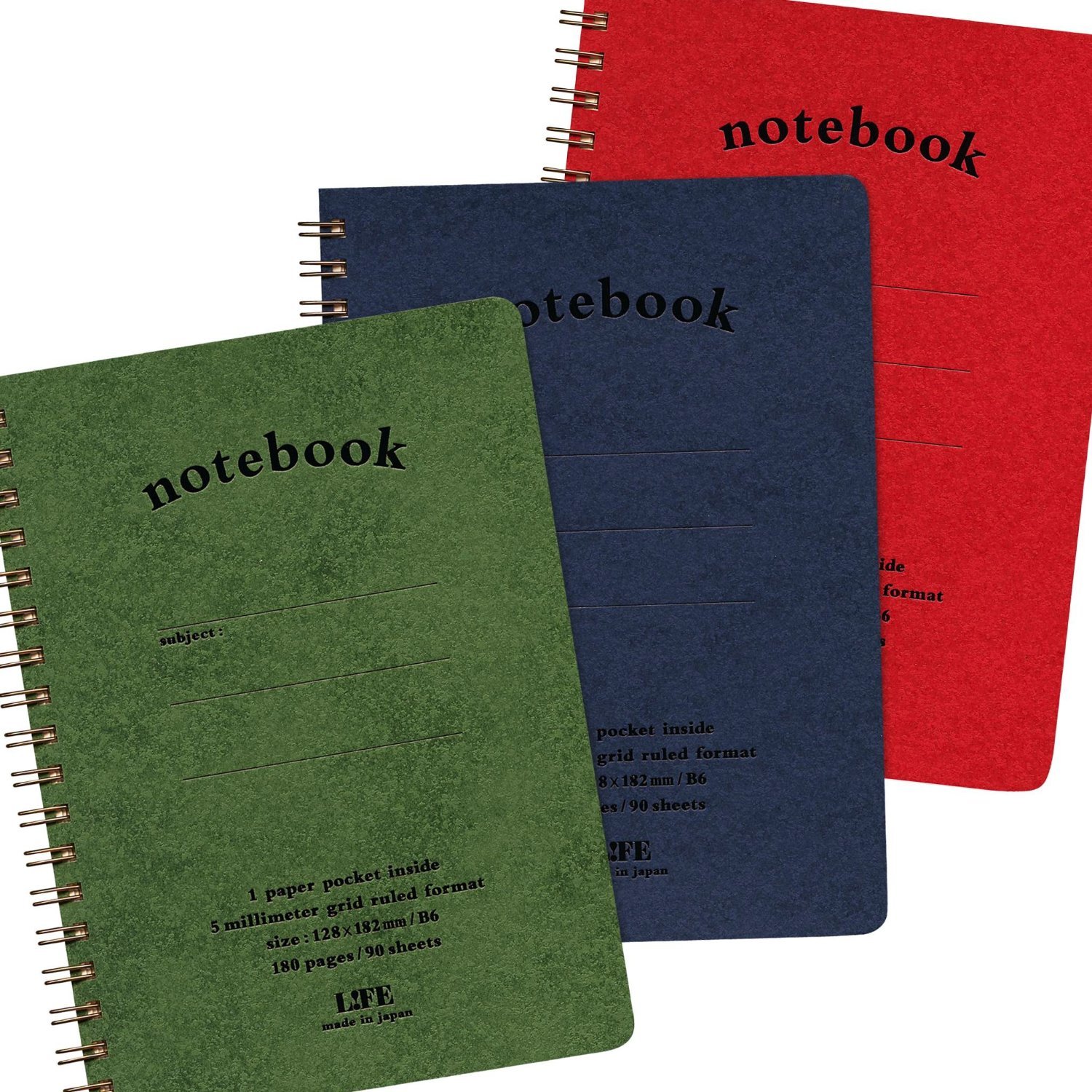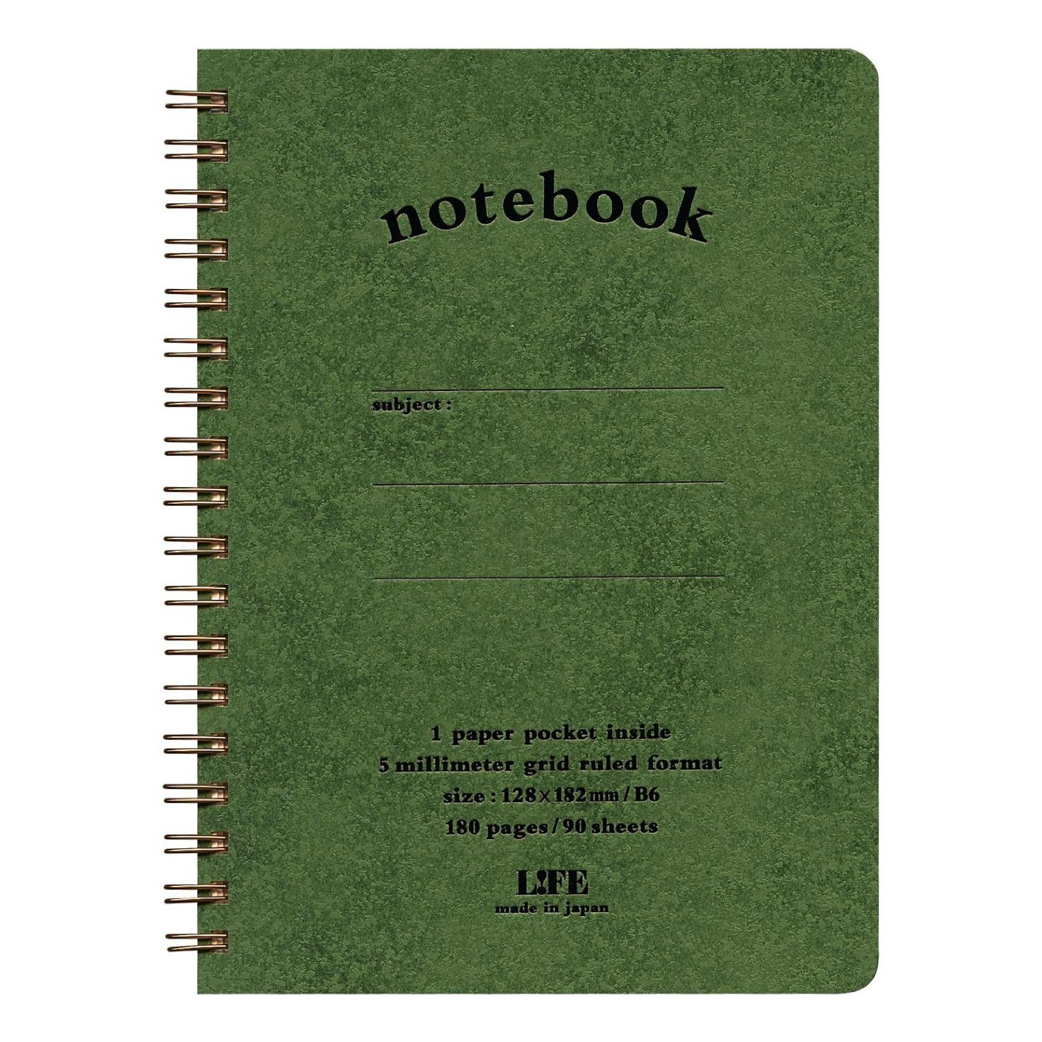 LIFE Note book pocket with B6 5mm Grid 90 Seets Green