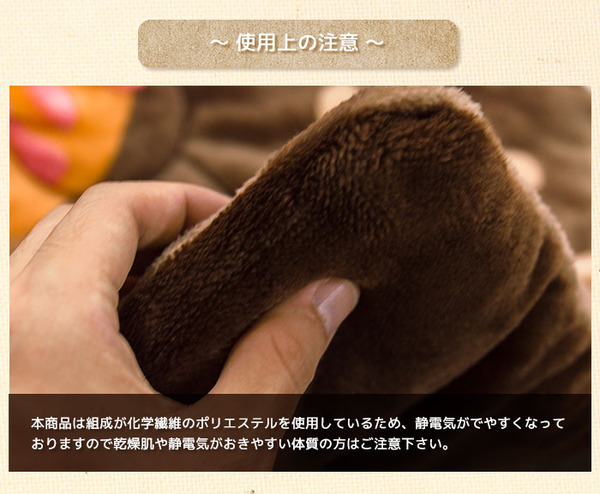 注意点:組成が化学繊維のポリエステルを多く占めているため静電気が発生しやすい仕様となっております。