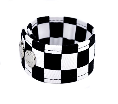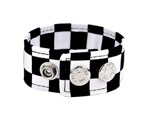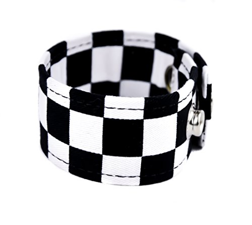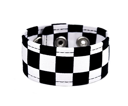 -. Feature : Black & White Checkered Quality Fabric Vegan Friendly / Well Made High Quality Fabric Vegan Friendly / Heavy Duty Snap Closure / Wristband is 1-1/4" Wide / Measurements: Adjustable from 7" inches - 7-3/4" inches