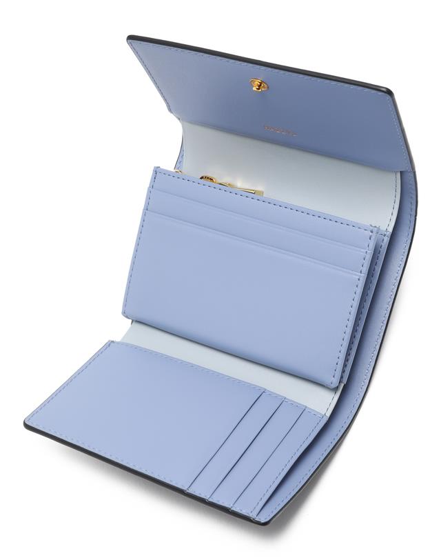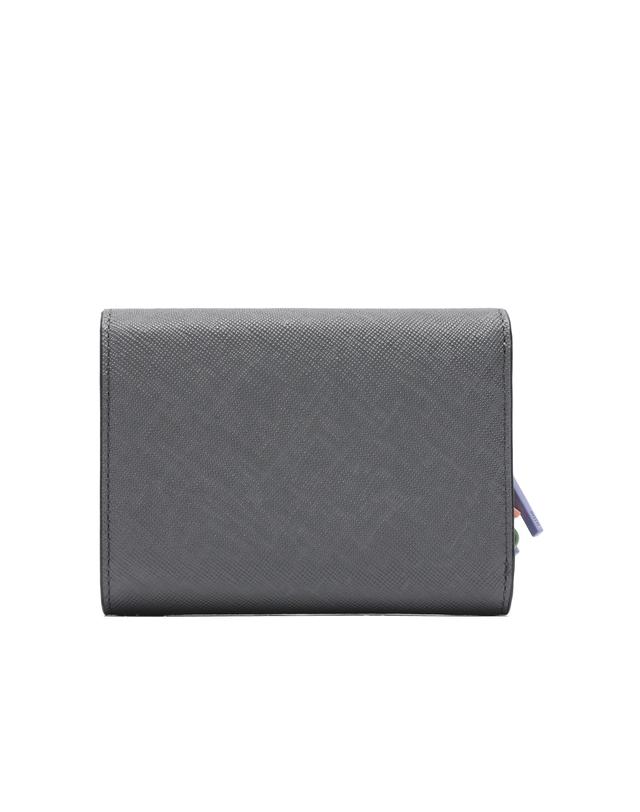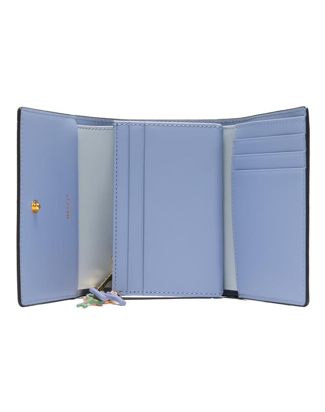 내부를 컬러 배색하여 세련된 외관을 보여주며 퍼피 로고 장식과 브랜드 이니셜 로고 참장식으로 포인트를 준 3단 반지갑입니다.