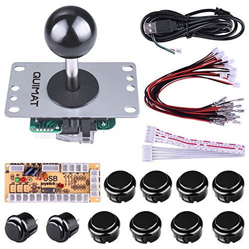 Quimat Arcade Game DIY Parts kit for PC and Raspberry Pi 1/2/3 with RetroPie, 5Pin Joystick, 8x 30MM and 2x 24MM Buttons Kit (Black)