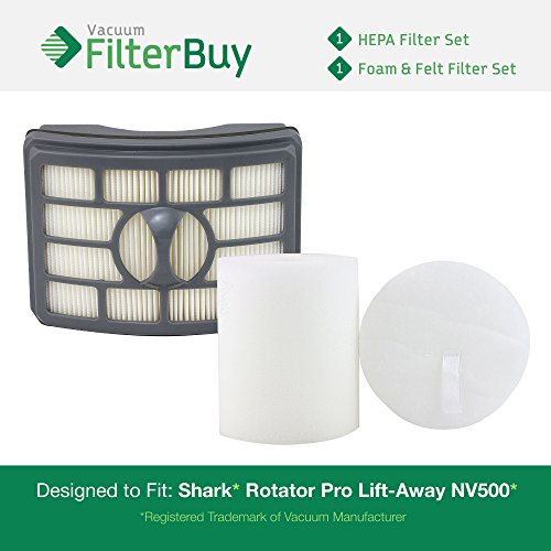 Shark Rotator Professional Lift-Away NV500 Filter Kit, Part #'s XHF500 & XFF500. Designed by FilterBuy to fit Shark Rotator Professional Lift-Away Model NV500 & NV501.