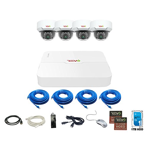 Revo America Ultra 4CH 4K H.265 NVR, 1 TB Surveillance Grade HDD, Remote Access, with 4x 1080p Indoor/Outodor IR Mini Vandal Dome Cameras