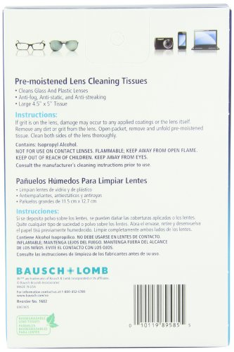 -. Feature : - Bausch & Lomb Sight Savers Premoistened Lens Cleaning Tissues