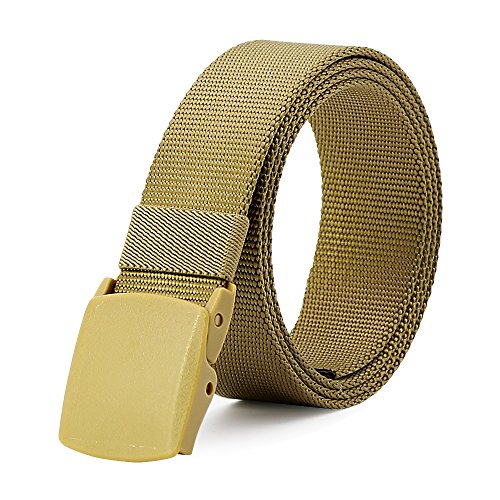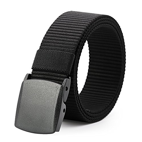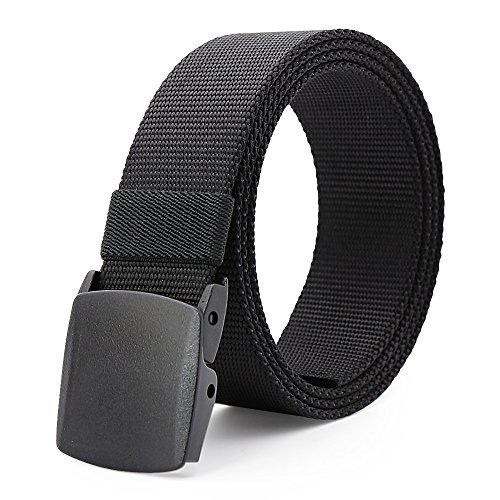 ★ Automatic Buckle, no holes in belt. If the Strap is too long for you, you can trim the strap length to fit your size. Men's tactical heavy-duty belt, made of high quality breathable nylon material that has a strong evaporation of sweat, more comfortable and breathable. 100% Nylon; Non-metallic, low profile plastic buckle. Quick Dry material. Stain resistant.