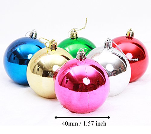 Honeyhome Multicolor Christmas Ball Decorations (40mm/1.57in), Tree Shatterproof Colorful Balls Ornaments, Festive Hanging Decor Pack of 24pcs (A)