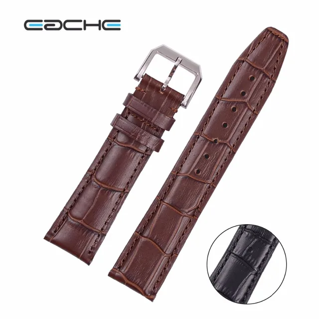 | [해외]새로운 도착 20 미리메터 22 미리메터 브라운 블랙 정품 가죽 시계 줄 악어 패턴 시계 스트랩 실버 블랙 버클 |