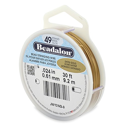Beadalon 49-Strand Bead Stringing Wire, 0.024-Inch, Satin Gold, 30-Feet