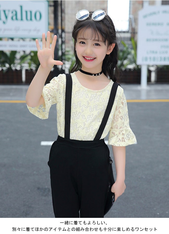 女の子 2点セット レースブラウス 五分丈袖 女児 サロペット 七分丈パンツ 子供服 セットアップ 夏物 春秋物 着まわし キッズ服女の子用のトップス+サロペットの2点セットが登場トップスは星柄レースのブラウスで甘さが抜群五分丈のベルスリーブもとてもキュートなアクセントを付けるサロペットはシンプルな七分丈ズボン仕様で、シルエットも色チョイスもレトロ感が溢れ出し、とても気質アップカラー:ピンク ベージュ素材 綿混紡 ポリエステルサイズ(cm) 120 130 140 150 160120 トップス 着丈39 バスト60 サロペット 総丈68 ウエスト(ゴム仕様)45130 トップス 着丈42 バスト63 サロペット 総丈72 ウエスト(ゴム仕様)48140 トップス 着丈45 バスト68 サロペット 総丈76 ウエスト(ゴム仕様)51150 トップス 着丈48 バスト71 サロペット 総丈80 ウエスト(ゴム仕様)54160 トップス 着丈51 バスト74 サロペット 総丈84 ウエスト(ゴム仕様)57ご注意:※サイズは平置きサイズです。素人採寸ですので、若干の誤差がございます、ご了承ください。