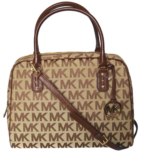 -. Binding : Apparel -. Brand : Michael Kors -. Color : Beige / Mocha -. Department : womens -. EAN : 0885949838200 -. Feature : Authentic Michael Kors Signature Jacquard with Mocha leather Trim / Two Way to Wear Leather Strap : 5.5" Drop Double Handles / 22" Drop Crossbody Srap with Crib / Measures: 13.5" (W) x 10" (H) x 6" (D) / Zip Top Snap Closure. Michael Kors Hangtag / One zip pocket & 4 multifunction slip pockets -. PackageQuantity : 1 -. ProductGroup : Shoes -. ProductTypeName : BAG -. Title : Michael Kors MK Signature LG Satchel Handbag Shoulder Bag - Mocha -. UPC : 885949838200