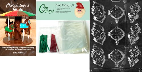 Cybrtrayd Ornaments Chocolate Mold with Chocolatier's Bundle of 50 Cello Bags, 25 Green and 25 Red Twist Ties and Chocolatier's Guide