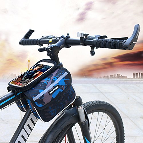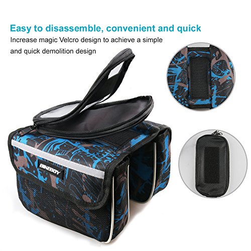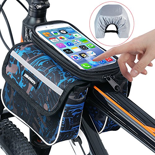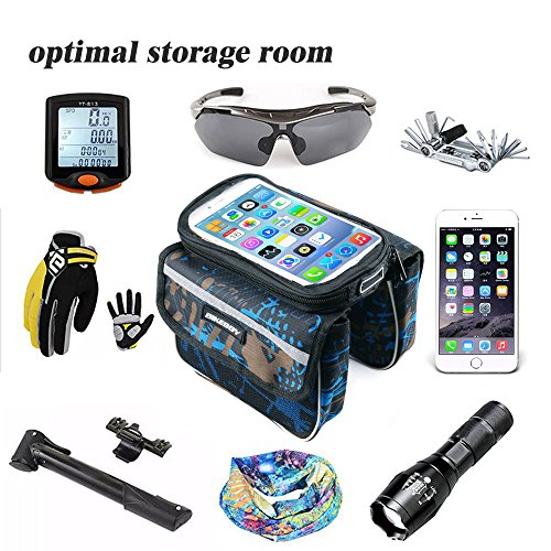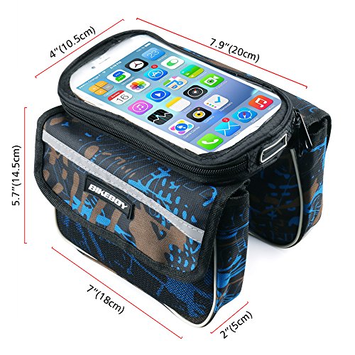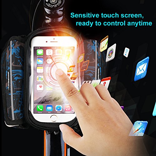 Keep it Compact Functional! This top tube bike bag is small and very light, and it can fit all the necessary items you might need while you are on top of your bike. It features 2-side pockets with sealed zippers, allowing you to organize your items better, so whenever you need your gear tools or snacks bars, you will get them quickly. On the top, it has a transparent pouch that will fit your smartphone or any other device up to 7.48'×4.13'(max. phone screen 5.5 inches). So Light you'll Forget it's There Fitting in an adult's hand easily. Enkeeo's front tube bike bag is very compact and light to fit your phone, emergency tools and a couple of snack bars and gels to keep you going. Take it to all your day excursions, weekend activities with your cycling friends and even to your 1-week cycling adventure across beautiful landscapes and extreme mountain's ports. This saddle bag will be your best companion! Product Specifications Phone bag: 7.48×4.13 in. (19×10.5 cm) / Max phone screen: 5.5in. Side pockets: 6.3×4.72×1.77 in. (16×12×4.5 cm) Net weight: 0.23 lbs. (0.104kg) Package Content 1× Bike Bag 1× Waterproof Cover 0