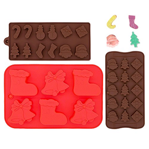 IHUIXINHE Christmas Food Grade Non-stick Silicone Mold Chocolate, Jelly, Biscuits and Candy Mold, Cake Baking Mold (Set of 3)