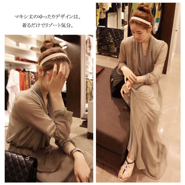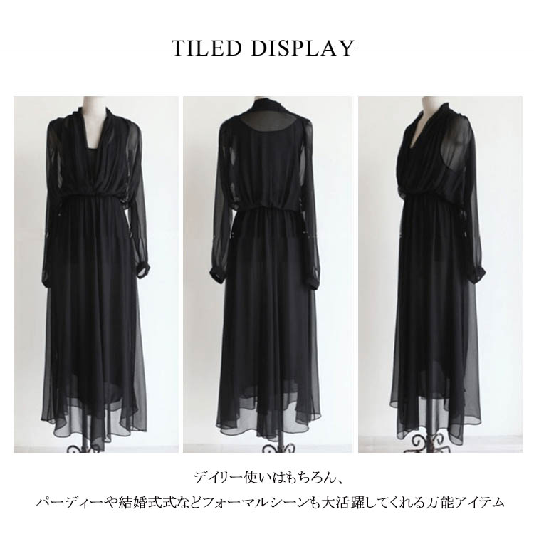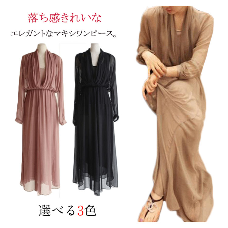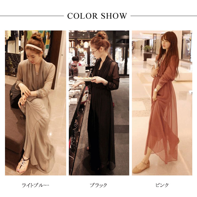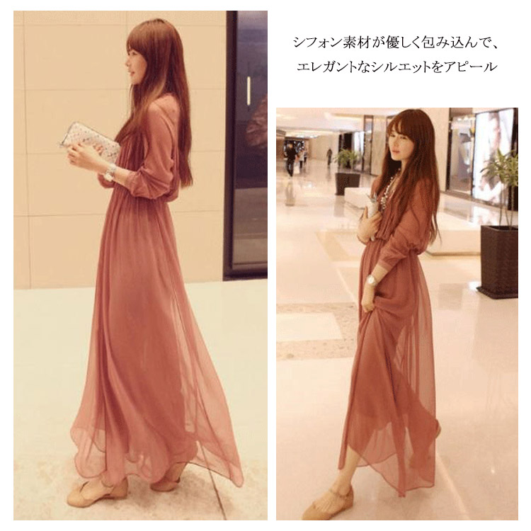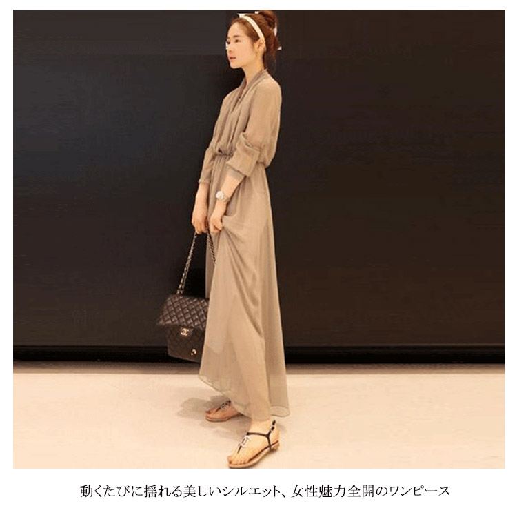 | 落ち感きれいなエレガントなマキシワンピース。シックな大人の魅力に仕上げてくれる優秀なアイテムシフォン素材が優しく包み込んで、エレガントなシルエットをアピール動くたびに揺れる美しいシルエット、女性魅力全開のワンピースマキシ丈のゆったりデザインは、着るだけでリゾート気分。デイリー使いはもちろん、パーディーや結婚式式などフォーマルシーンも大活躍してくれる万能アイテム | |