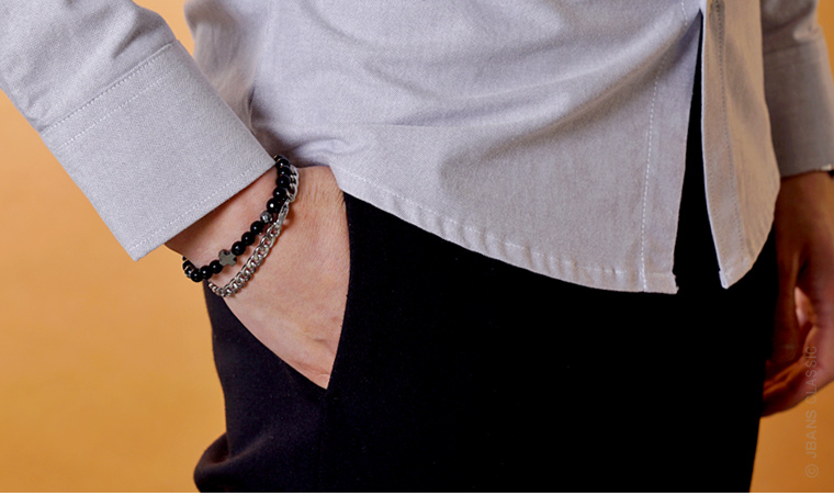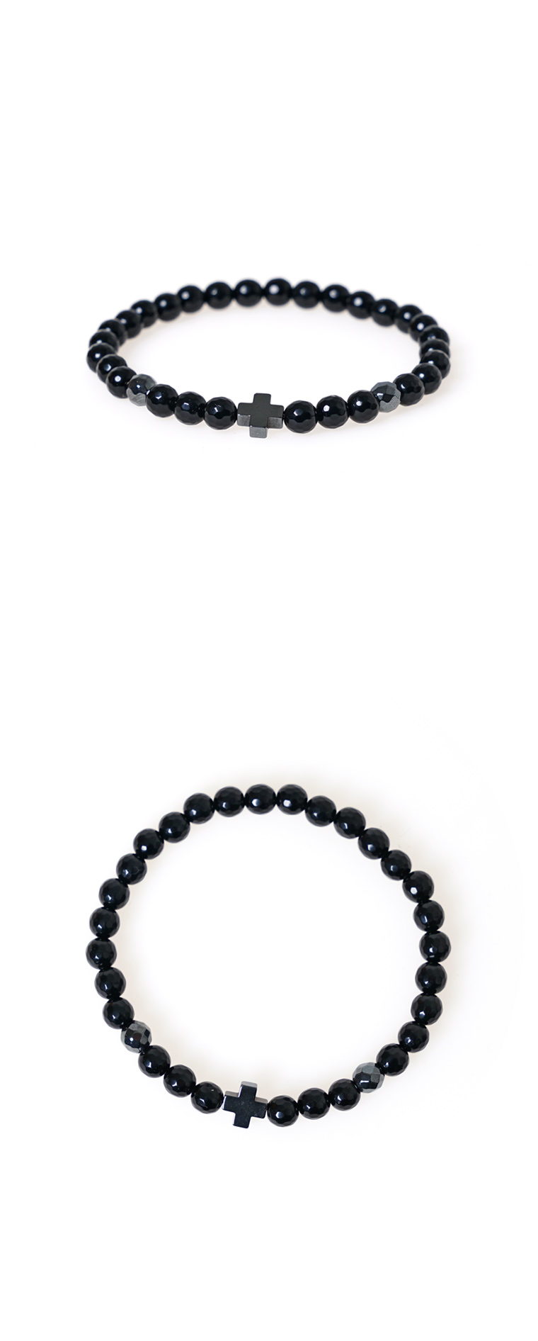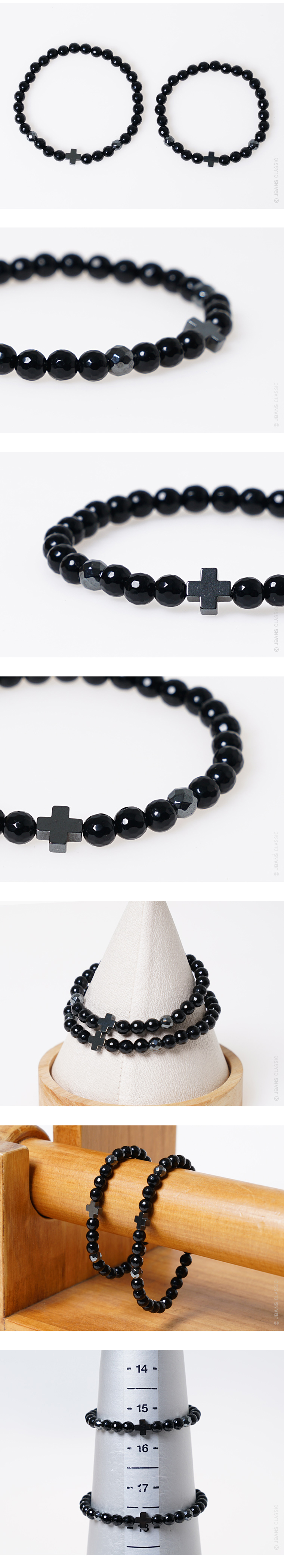 6mm 마이크로컷 가공된 유광오닉스를 이용해 제작된 원석팔찌입니다. 매치하기 좋은 블랙톤애 십자형 헤마타이트를 포인트장식으로 배치되어 모던한 느낌을 주는 팔찌로 디자인되었습니다. 슬림한 디자인으로 댄디한 코디에 가볍게 단품으로 코디하거나, 가죽팔찌 등 다른 악세사리와 함께 레이어드하면 더욱 잘 어울립니다. 커플팔찌로 착용하기 좋도록 남성용, 여성용, 주문제작 사이즈로 제작됩니다.