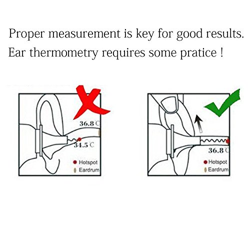 Extra Instructions: Normal operating Environment: 16~35°C (61~95°F) 85% RH. And store the thermometer in room temperature and humidity condition for at least 30 minutes to stabilize it prior to inital use. Please clean ear wax, tip dirty or replace battery when low volume which affect readings.