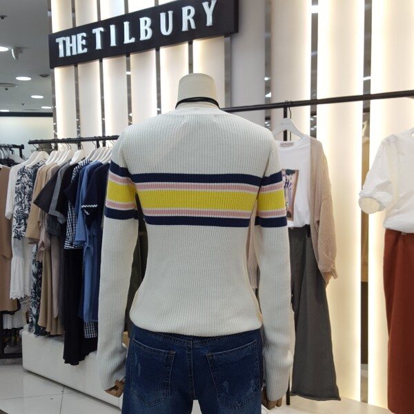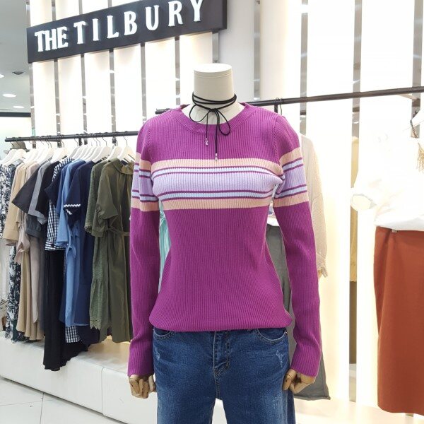 바디라인에 피팅되어 슬림하게 즐길수있는 골지니트입니다.감각적인 컬러 조합으로라인배색스타일의제품입니다.