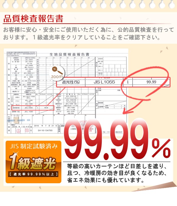 備考 :1級遮光カーテン(遮光率99.99%以上)