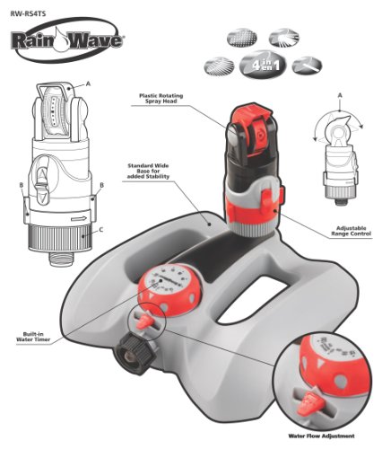 -. Feature : Rotary SP.R.Inkler with Timer / Rotary sP.R.Inkler with 'egg timer' water timer / 4 in 1 spray pattern options