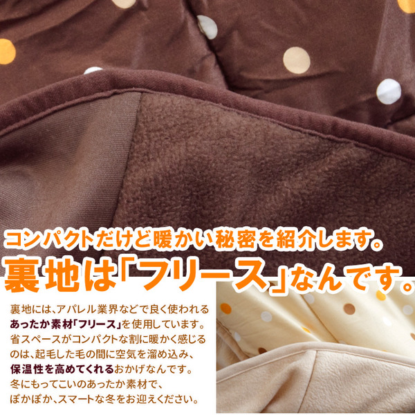 通常商品こたつ布団 省スペース 正方形 掛敷セット カジュアル ドット柄 水玉 『サークルピコ(ピコ3)』 ブラウン 約180×180cm