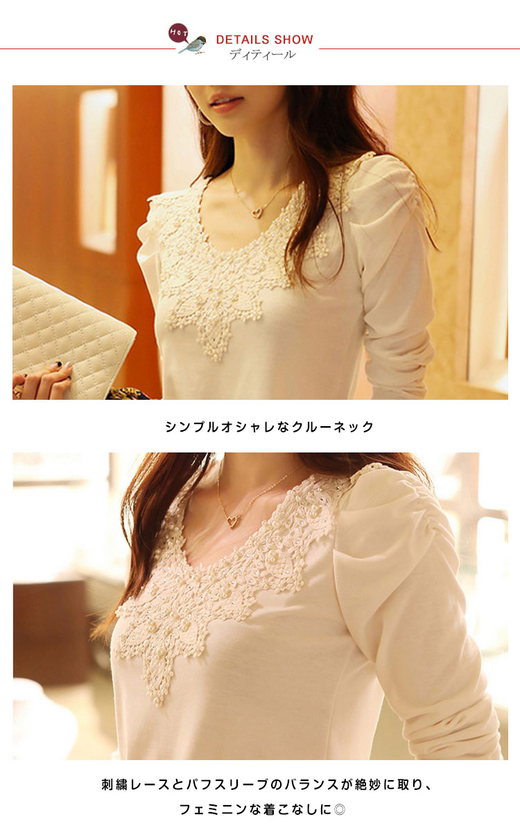 | 一枚でロングシーズン大活躍の長袖ニットソーの新作が登場☆レースをかぶせたデザインで甘めな大人かわいいスタイルに★ふんわりとしたニットソー素材で女の子らしい印象を演出♪すっきりとしたシルエットなので、アウターにも響きにくくこれからの季節にも使いやすい!スタイリングにも取り入れやすく、お手持ちのボトムスとも好相性◎デートやお出かけスタイルにもピッタリです☆ | |