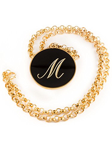 -. Feature : Vergoldete Halskette und Medaillon mit Initiale, Emaille, Schwarz / Handgemacht in Florenz, Cecchi-original, Umfang 5 cm / Vergoldet