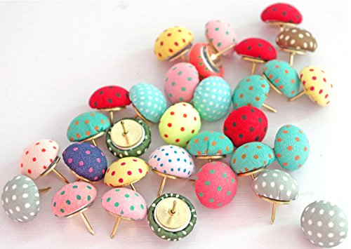 Pack of 30 pieces polka dot mushroon shape push pins with various colors
