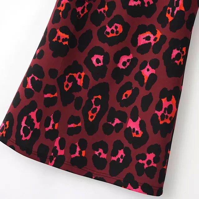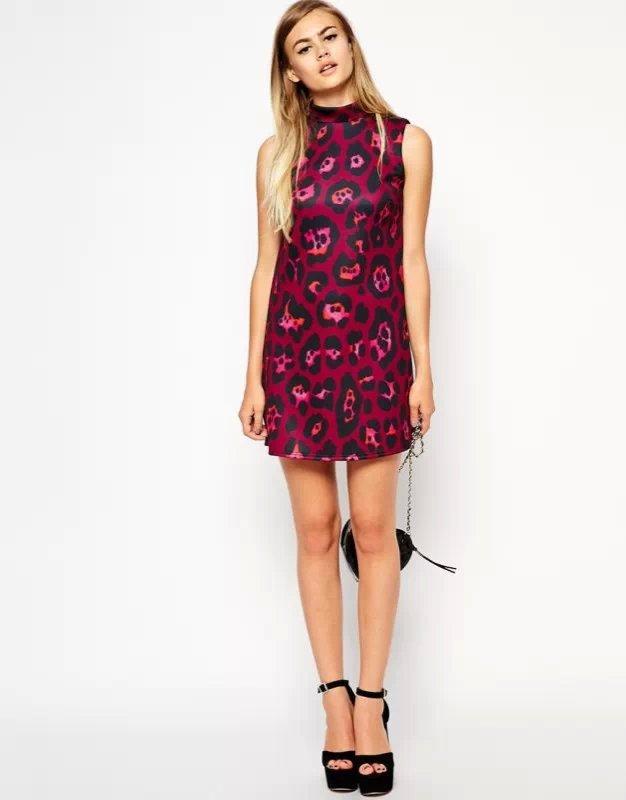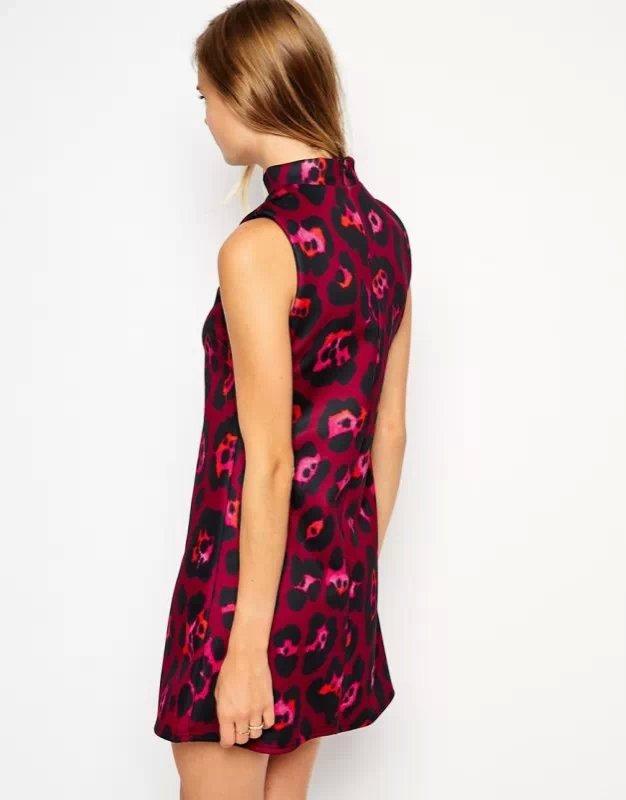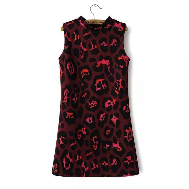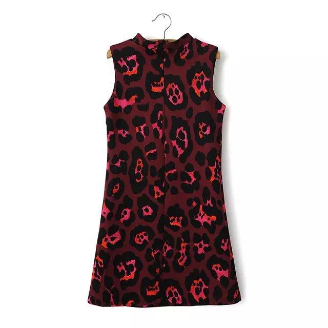 New Fashion Leopard Printed Vestidos Sleeveless Stand Collar Basic Pullover Women Dresses High Street Red Slim Casual Dress
