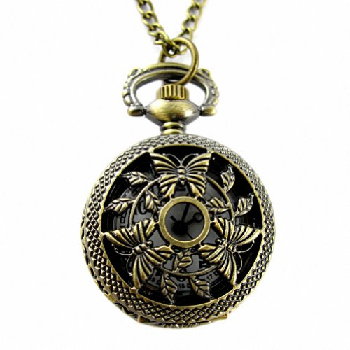 -. Title : YouYouPifa Retro Bronze Three Butterfly Pattern Hollow Small Pocket Watch
