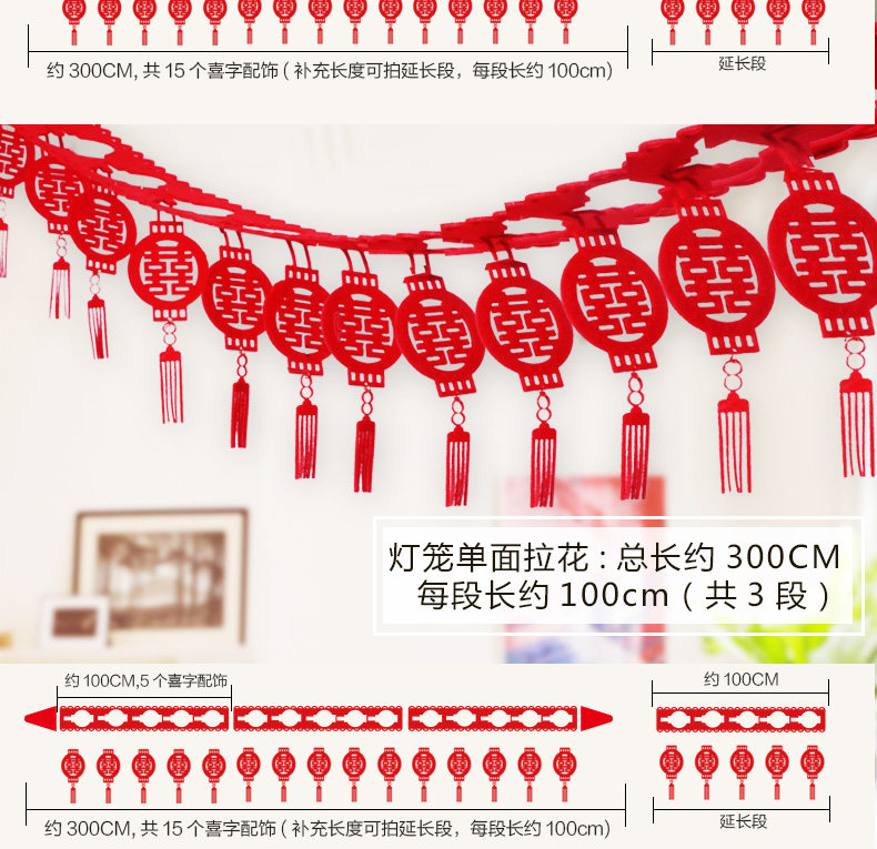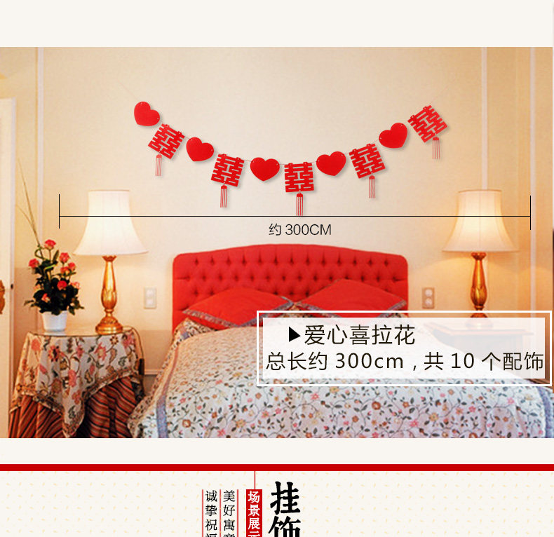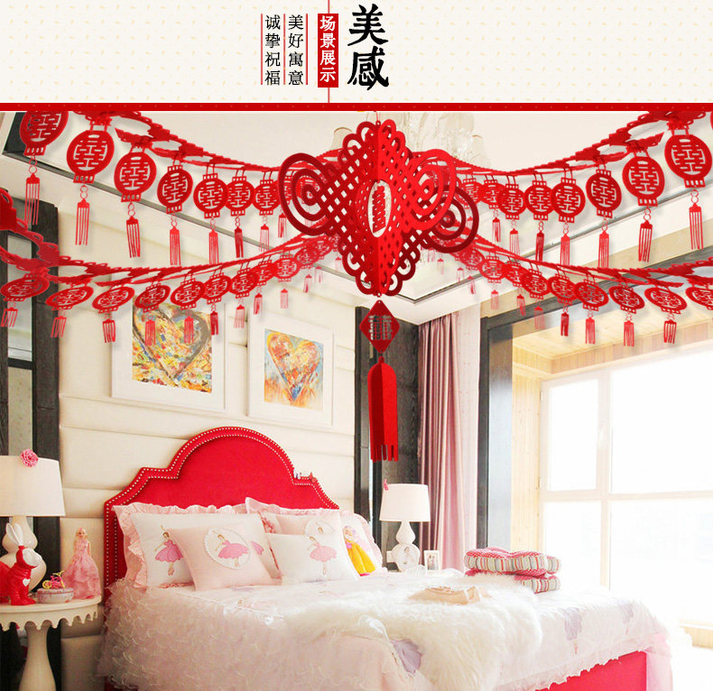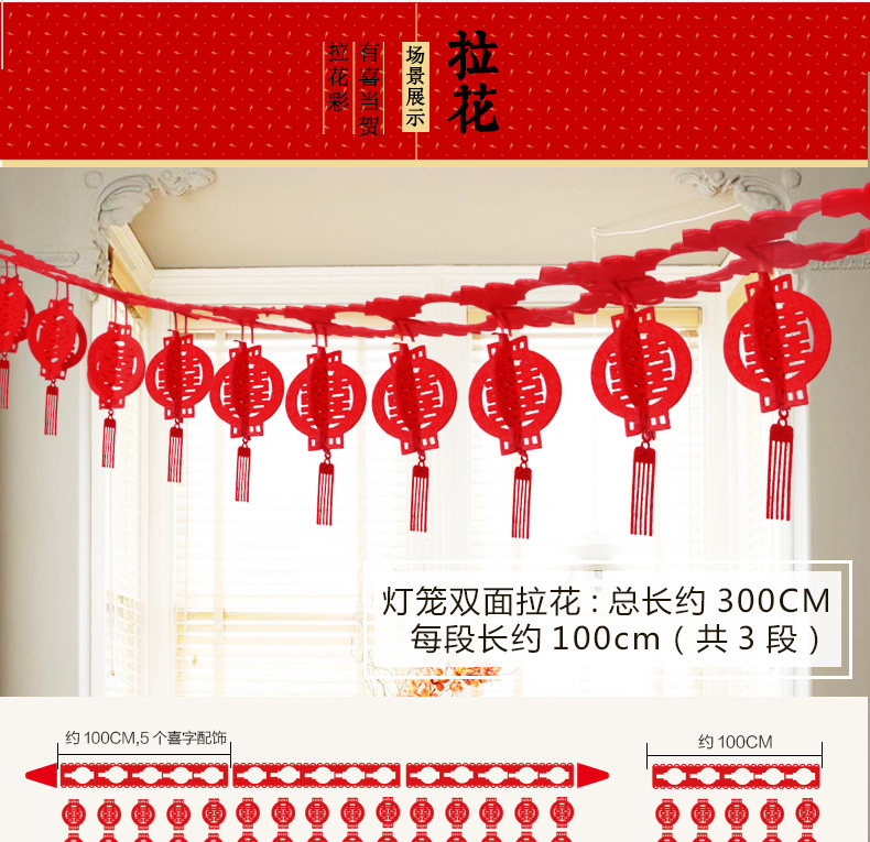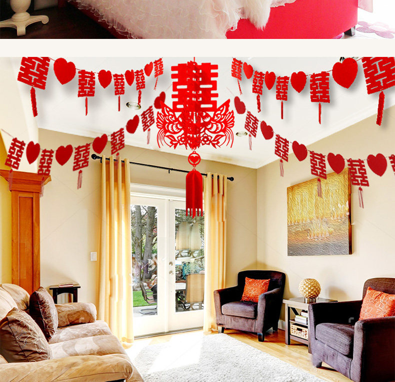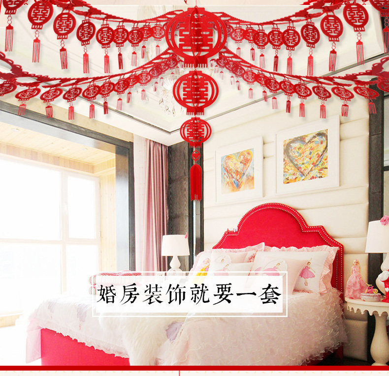 ?结婚婚庆用品婚房布置拉花装饰套餐  婚礼喜字挂饰喜庆客厅卧室