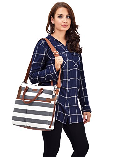 Designed to meet the needs of the next generation parents, this unique Diaper Bag from Daulia is a perfect blend of style and practicality. Moms have to carry lot of essentials while traveling with their babies and these bags are designed to meet the fashion and functional needs of them. It is made of the very best quality high density Canvas material and comes with a stylish and contemporary stripped design. Whether you are going to attend any social gathering or doing some outdoor works while carrying the baby along with you, these cute bags can fulfill your needs with extreme satisfaction. What is more, buying this you get a unisex design diaper bag that fulfills the fashion statement of both present day moms and dads. Provided with zip secured internal and external pockets, there are many compartments providing enough space to hold everything securely and the twin handle system allows comfortable carrying in hand or on shoulder whatever is convenient and can also be connected to the stroller's handlebars. The diaper bags are quite light and specious enough to be used for everyday bag to meet your varying needs. These are extremely durable and buying this means you are making an investment for years. Available at affordable price with free shipping and accelerated delivery, this is a perfect gift for baby shower.Feature