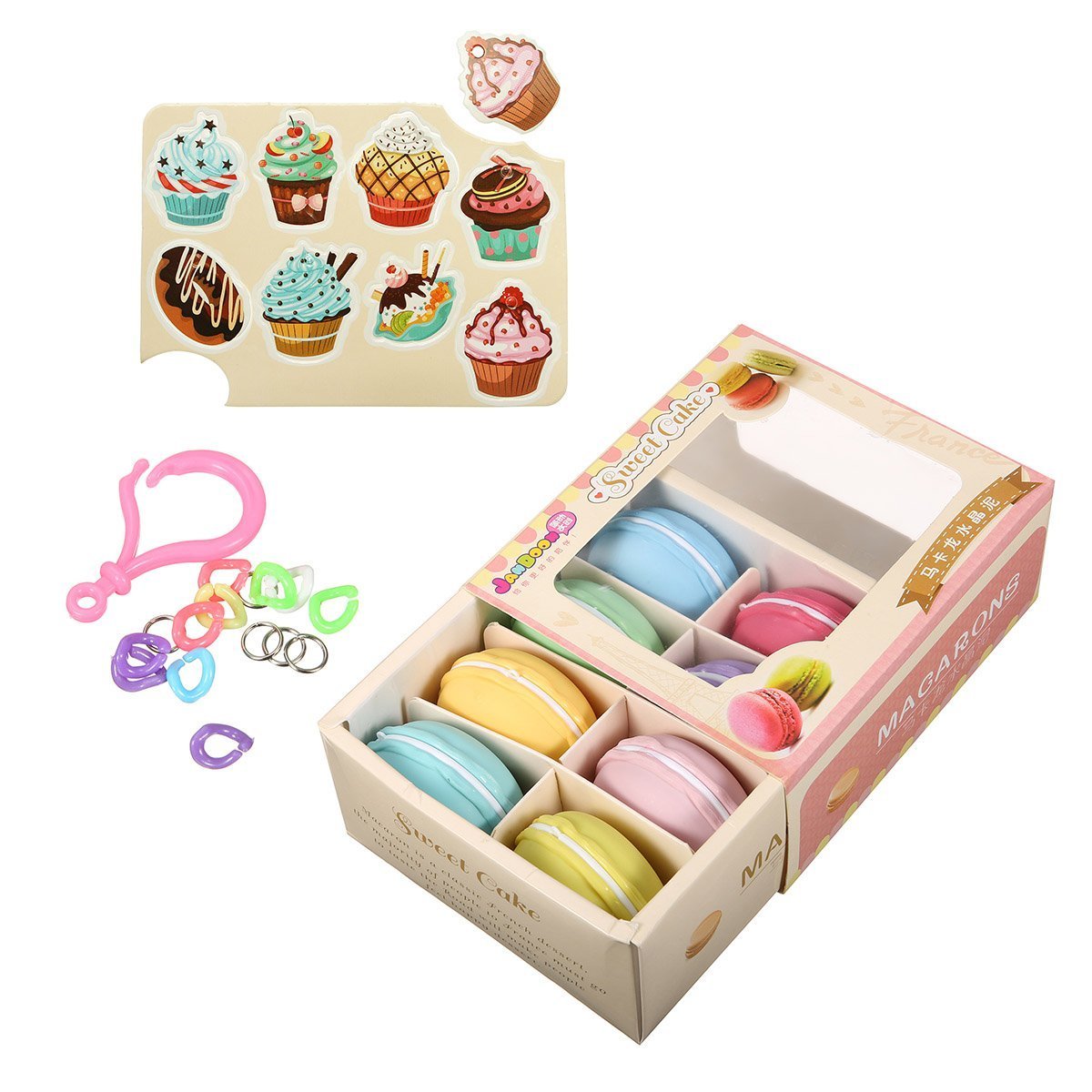 Macarons Slime Crystal Mud is non-toxic, not greasy, crystal clear, shaped like crystal, green and healthy, Strong tensile strength, flexible, can bounch.It has rich colors, super soft, super cute, is great as a gift.