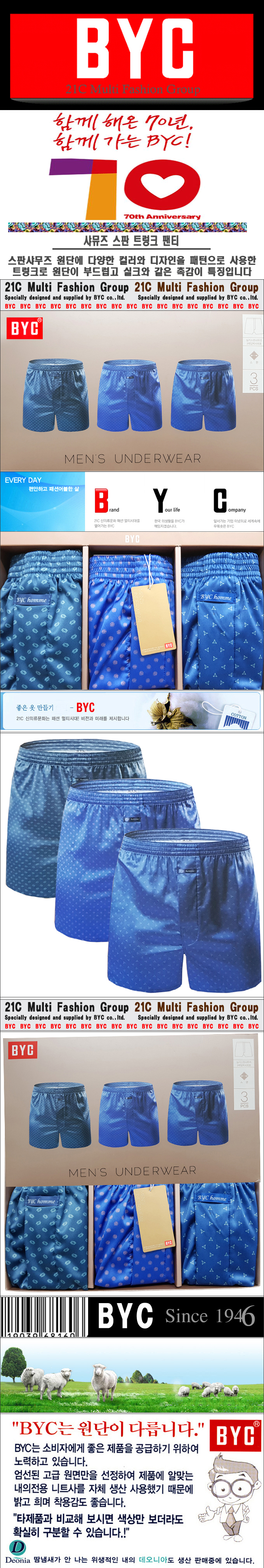 BYC 트렁크팬티중 3매입으로 출시된 실키스판 샤무즈 박서 상품 입니다