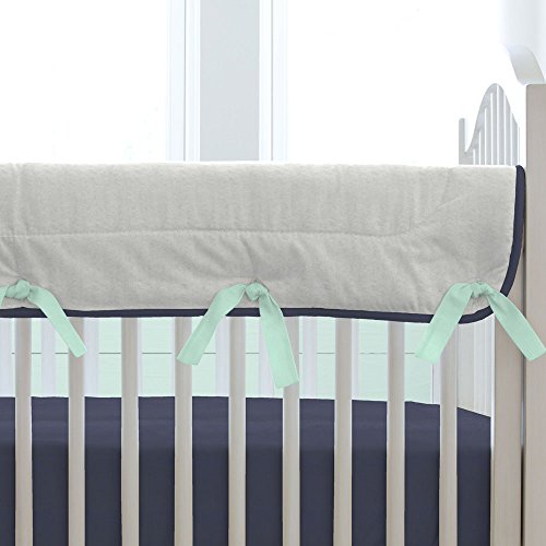 -. Feature : Single (1) rail cover / Measures 50" long by 18" wide / Folds over top of crib rail / Reversible / Made in the USA