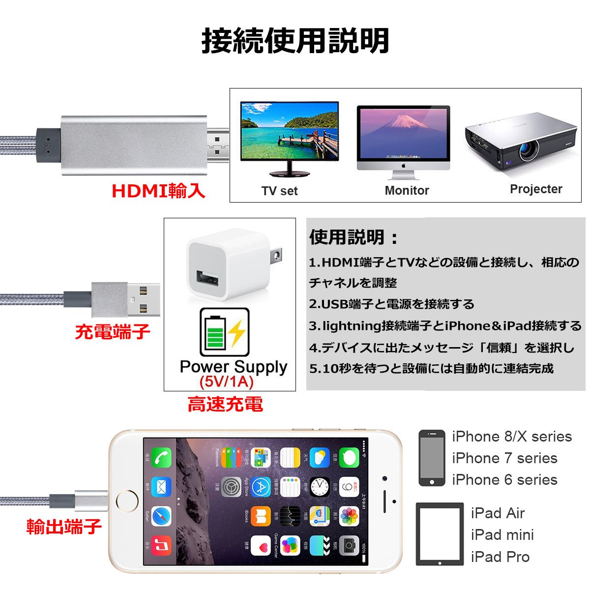 3. While using this HDMI conversion cable, the iPhone / iPad's clock is fixed at 9:41, the remaining battery charge is displayed on full charge, so there is no effect on the operation.