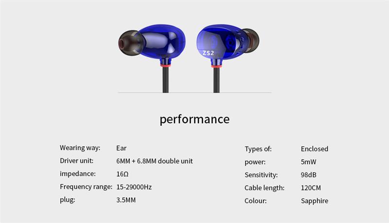 2016 New Original KZ ZS2 In-Ear Earphone Headphones Ecouteur Headset Auriculares Cuffie Audifonos for Xiaomi Mp3 Player