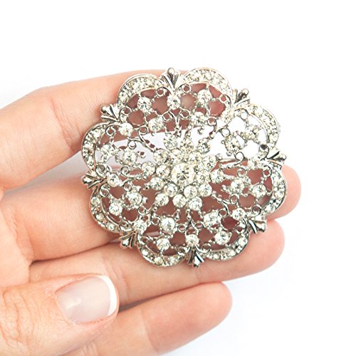 LARGE 2 INCH BROOCHES: These beautiful rhinestone brooches measure 2 inches by 2 inches and feature a brooch pin backing. They are sure to make a big impact on your wedding or event décor