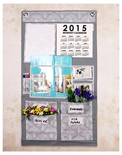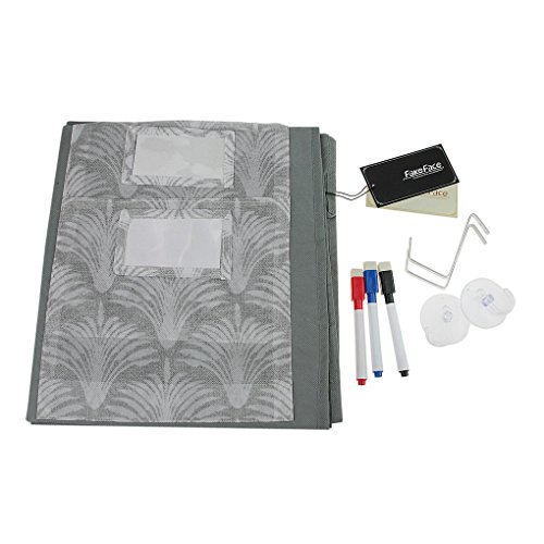 FakeFace Multi Pockets Hanging Storage Organizer with Message Board and 3 Erasable Mark Pens (Light Grey)