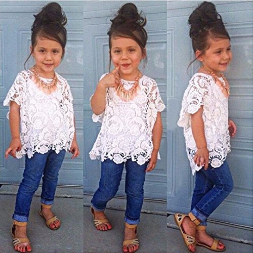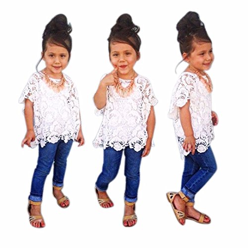 -. Title : Ecosin 3Pcs Baby Girls White Shirt + Vest + Denim Pants Set Clothes Outfits
