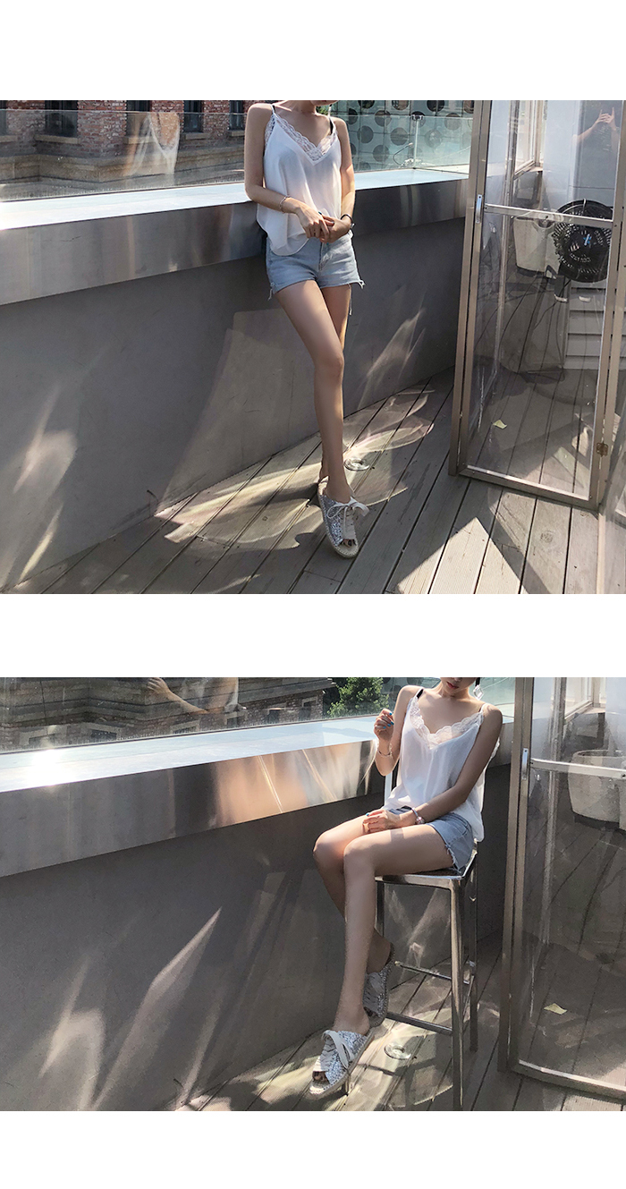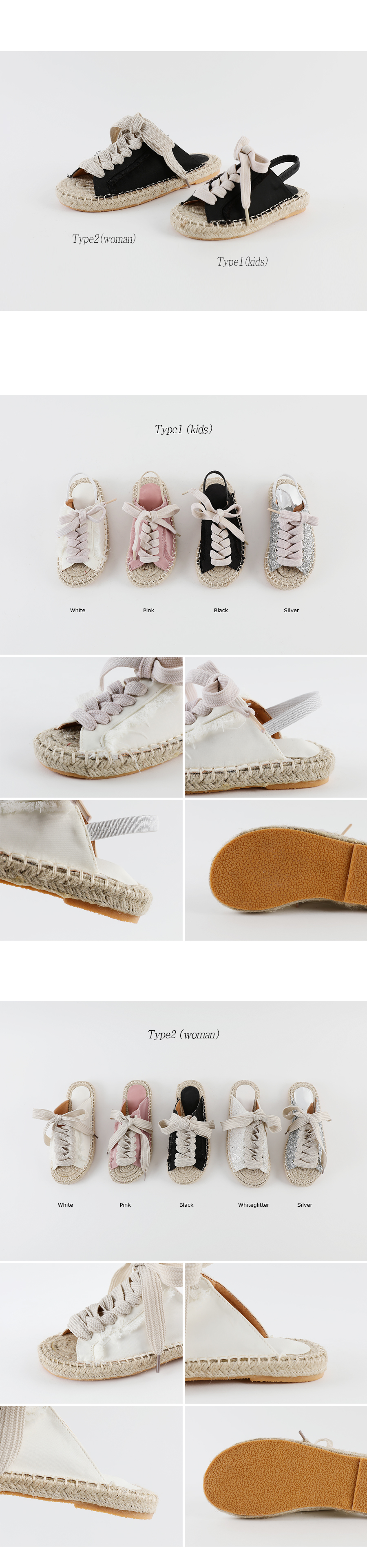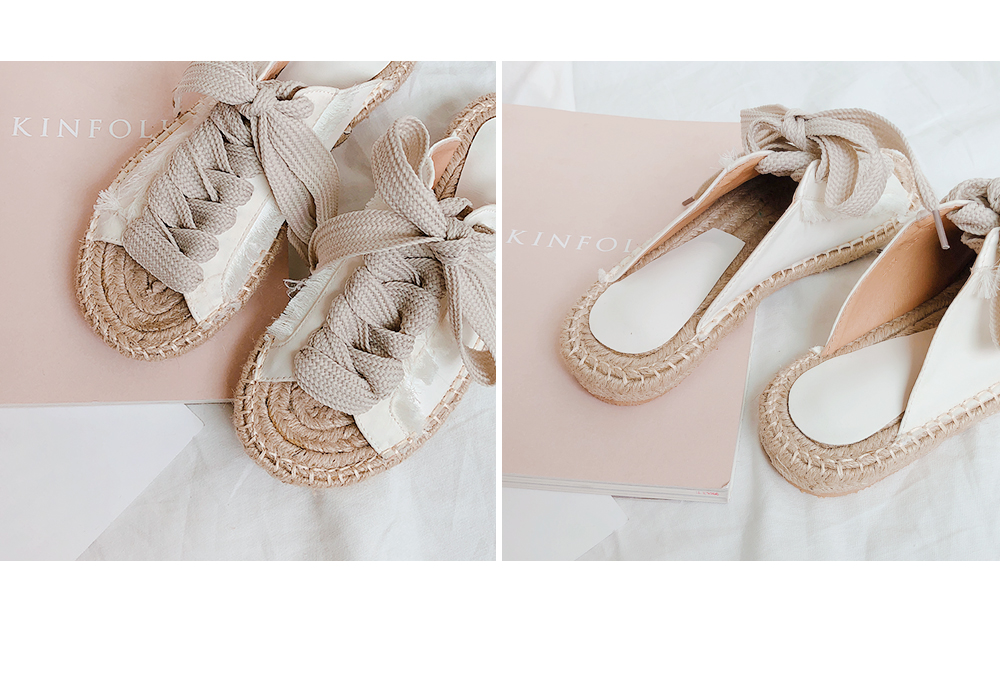 발등은 스니커즈처럼 끈으로 묶어지는 타입이며 에스파드류 소재가 더해지면서 코지한 무드가 물씬 느껴지는 제품입니다.