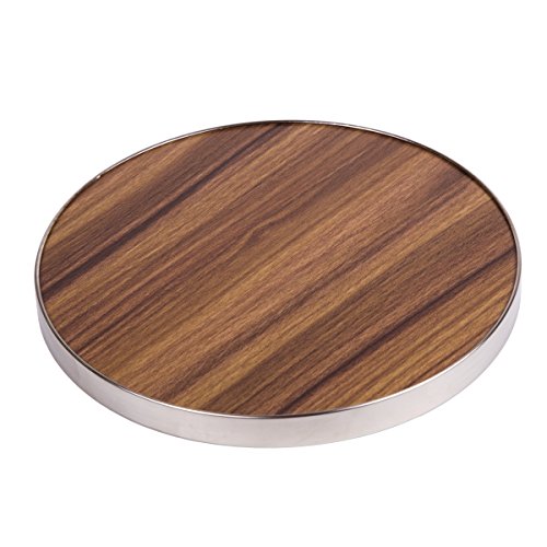 ReleaseDate : 2017-06-02 Studio : Creative Home Publisher : Creative Home Binding : Kitchen Product Description Made from fiber board with Acacia wood finish, known for its unique and natural contrasting patterns with stainless steel trim. Dimensions: 7" diam. X 1/2" H. Light enough to use as a serving board and durable enough to use as a trivet. Perfect gift for anniversaries, house-warming and Festival occasions. Easy to clean, hand washing recommend. 0