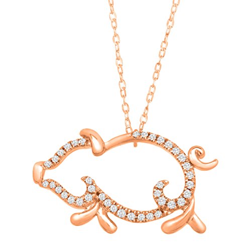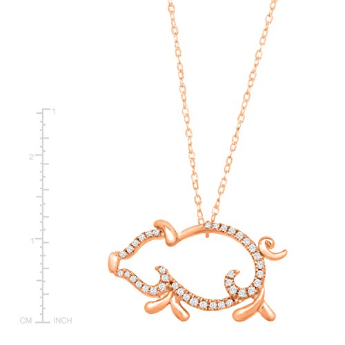 Give your playful style an update with this fun necklace! A total of 1/10 ct round-cut diamonds line the 10K rose gold edges of this open pig necklace. Feature piece measures 7/16 by 3/4 inches with a total length of 17 inches.Feature