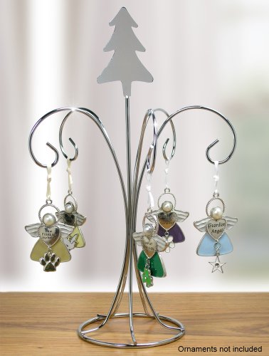-. Feature : CHRISTMAS ORNAMENT STAND with 5 hanging hooks for ornaments and a tree on the top / SILVER ORNAMENT STAND: Give as a gift to mom, grandma, sister for friend for Christmas or Birthday present. / MEASURES 12"H with 5 spiral arms. Each arm has 6"H hanging height. / ORNAMENT HOLDER is perfect for displaying your favorite collectible holiday hanging ornament decorations. Display on a shelf, fireplace mantel, curio cabinet, table centerpiece. / METAL ORNAMENT STAND in chrome color