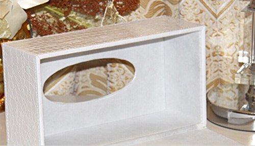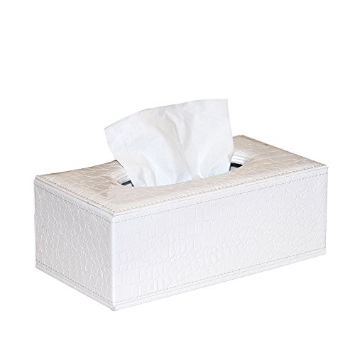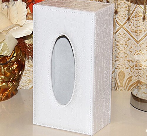 PU Leather White Crocodile Pattern Rectangular Tissue Box Holder For House&Car