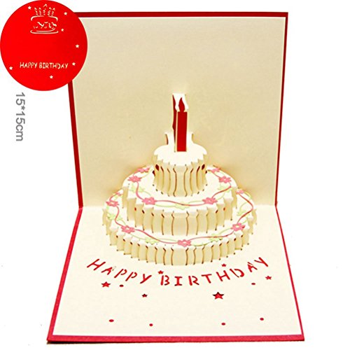 - Color: Mainly red. - Material: Paper - Size: About 30 * 15 cm / 11.81 * 5.91 inch (L * W). - With automatic laser cut technique, different from traditional paper cut. - The blank part can be filled with your words which show your best wishes for your beloved ones. - So sweet with designs of words "HAPPY BIRTHDAY" inside and outside with a beautiful butterfly. - Perfect for sending to elderly, your family, colleague and friends etc whoever you love. -------------------------------------------------------- Package Including 1 * 3D Colorful Birthday Card Happy Birthday Cake Pop Up Greeting Cards (Red) 0