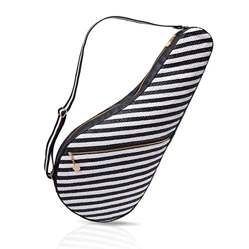 Tennis racquet cover of Squishee® and ballistic canvas is designed to hold the new larger head racquets. Features adjustable twill cross body strap. Roomy outer zip compartment will hold a hand towel and tennis balls. Inside: fully lined with convenient sidewall zipper compartment to hold your valuables. All Eric Javits handbags are lightweight and durable.