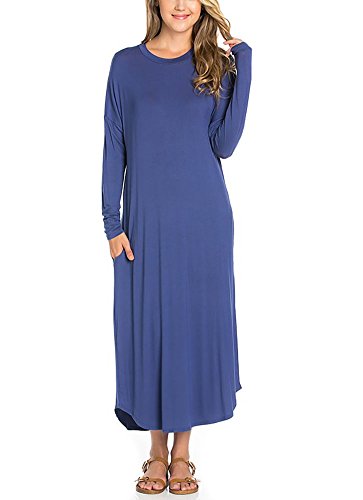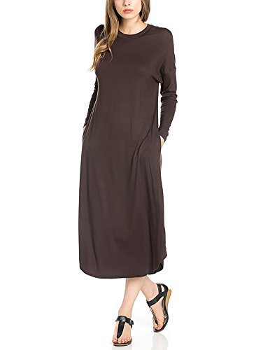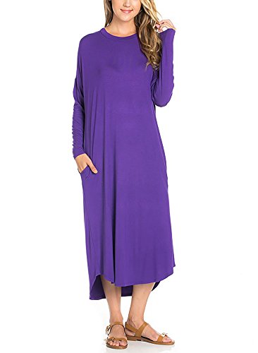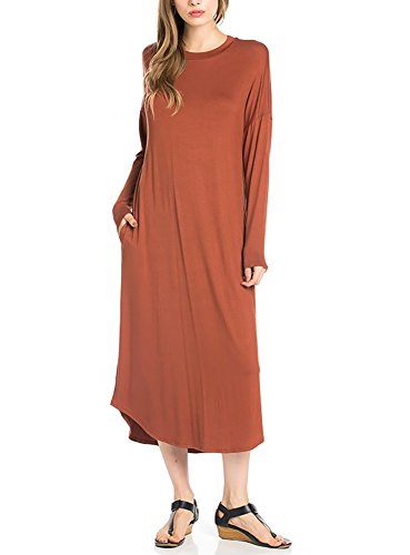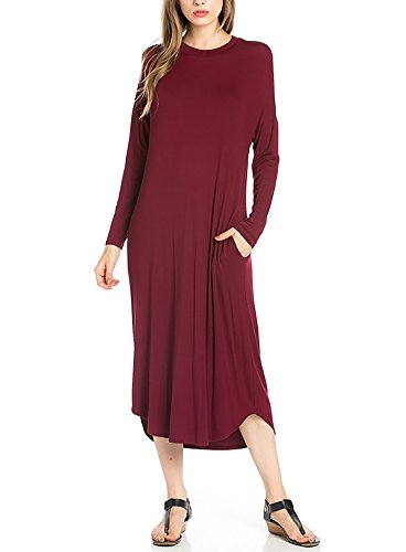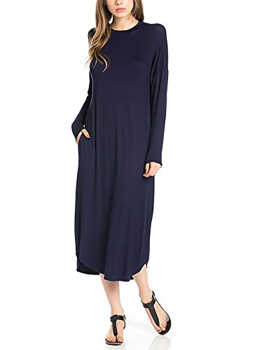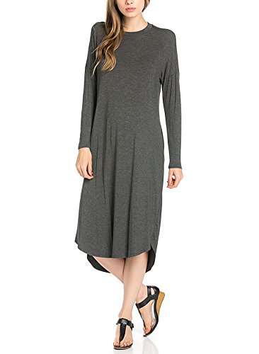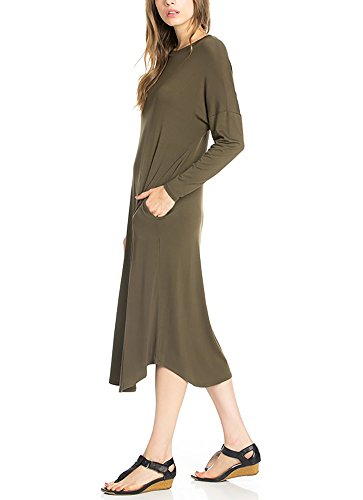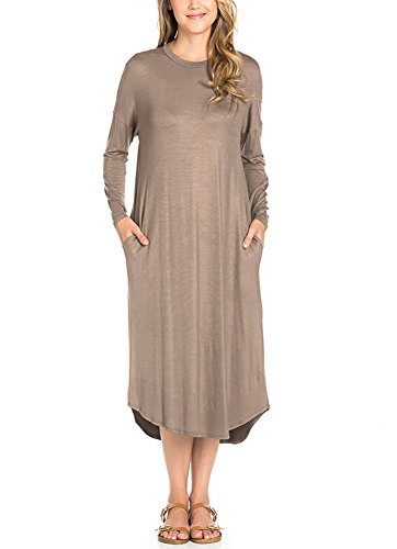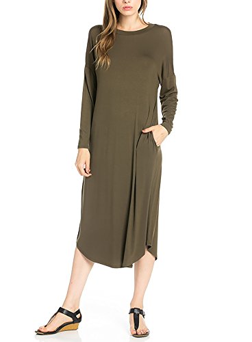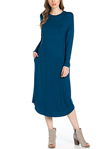 Made from soft rayon, this is our newest midi dress featuring long sleeves, pockets, and flowy silhouette.